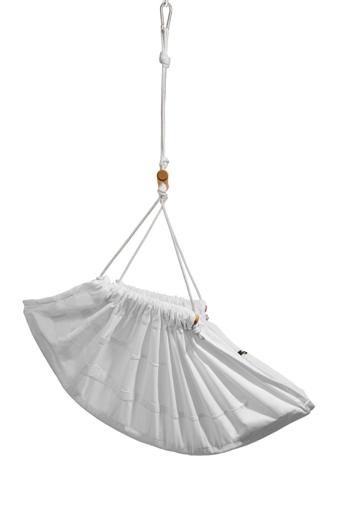 Silla colgante de relax blanca HOJDAVAK MAXIMUS OUT con cojín, Madera Exterior, Cuerda blanca