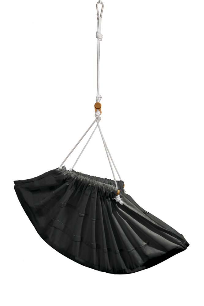 Silla colgante de relax negro jaspeado HOJDAVAK MAXIMUS OUT con cojín, Madera Exterior, Cuerda blanca