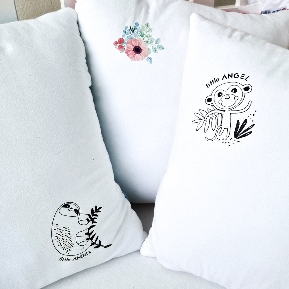 El cojín estampado es un excelente complemento para la cuna o la habitación infantil. La funda del cojín está hecha de tela de muselina en un lado. El lado estampado está hecho de punto de algodón con una mezcla de material termorregulador Outlast®. Ambos lados están forrados con vellón y en el interior hay 200 g de vellón de bolas, por lo que puede lavar el cojín sin temor a que se deforme.