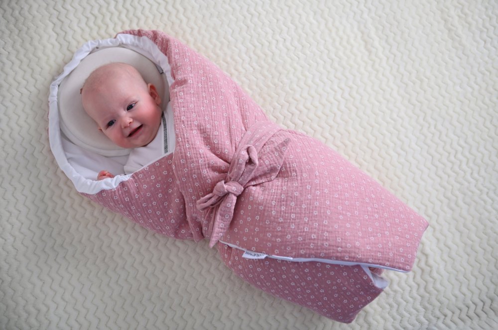 El arrullo se ata en la parte delantera con un lazo grande, que también es un adorno elegante. Crece con tu bebé, ya que puedes regular su tamaño tú mismo. Es ajustable tanto en anchura como en longitud. En caso de necesidad, se puede apretar el envoltorio alrededor de la cabeza del niño con un cordón que luego se puede ocultar en un bolsillo especial. Una vez desplegado, el envoltorio se puede utilizar como una manta grande y muy suave.