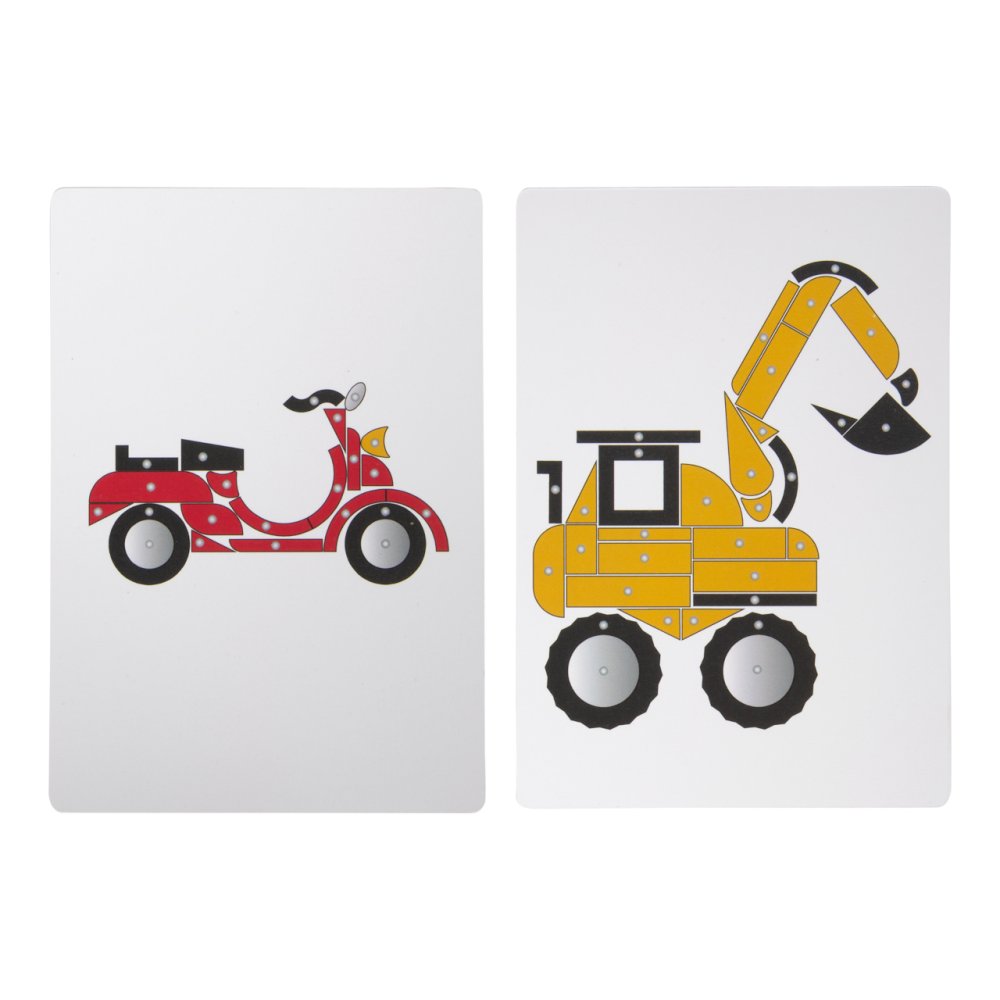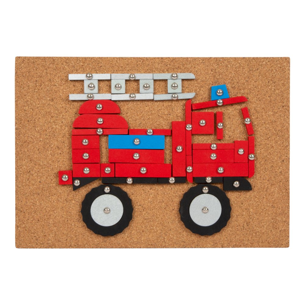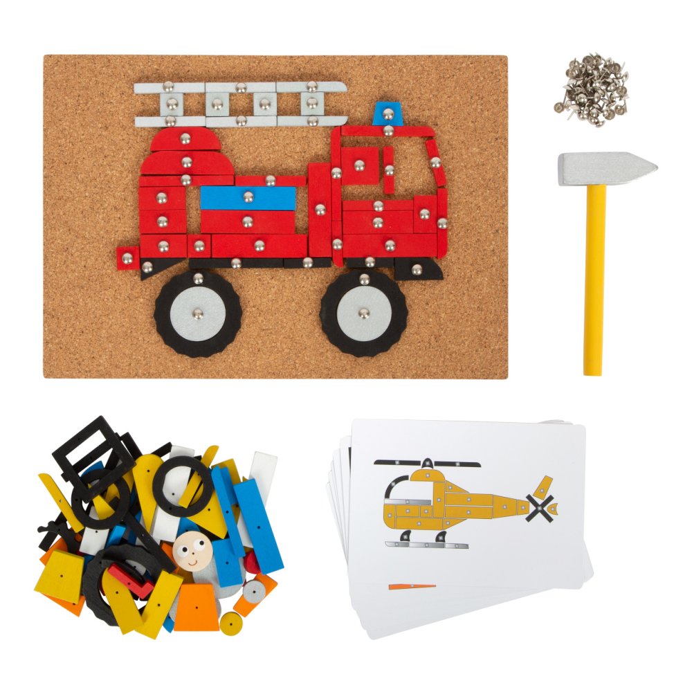 ¡Amplio juego creativo con el tema del transporte! En el paquete encontrarás una base de corcho, un martillo de madera, chinchetas y muchas piezas de madera laminada en diferentes formas y colores. En la caja, que también es adecuada para guardar este juguete, encontrarás seis plantillas de imágenes.Juego de martillo clásico en colores modernos y diseño inmortal, con el que los niños pueden crear imágenes de medios de transporte, máquinas de construcción, etc. Pueden seguir las plantillas de imágenes o crear según su propia imaginación. El juguete ayuda a desarrollar la creatividad, entrena la destreza, mejora la coordinación mano-ojo y el reconocimiento de colores y formas. El juego de martillo es adecuado para niños pequeños y mayores. Principales características: juego de martillo con una amplia selección de motivosmartillo de madera, chinchetas, base de corchopiezas de diferentes formas y coloreslos niños practicarán la motricidad y el reconocimiento de formas y coloresesquema de color modernomejora la destreza y la coordinación mano-ojo