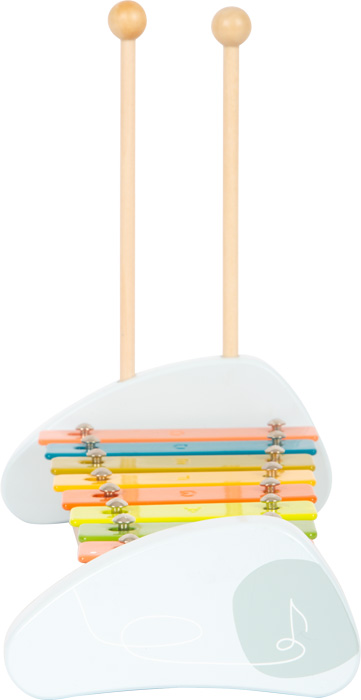 ¡Este xilófono de madera ofrece una introducción ideal al mundo del sonido! ¡Los niños ni siquiera necesitan saber leer partituras para tocar sus primeras canciones! Las barras de tono están codificadas por colores y ayudan a los niños con sus primeras composiciones musicales junto con las notas. Se suministra con robustas baquetas de madera maciza. ¡Este xilófono, con sus suaves colores azules y sus diferentes solapas en colores contrastantes, también llama la atención visualmente para la orquesta infantil! El xilófono entrena lúdicamente el ritmo junto con el sentido del ritmo y la primera comprensión de las notas y escalas musicales. De esta manera, los niños, los músicos ambiciosos, pueden dejar que su creatividad fluya libremente. Principales características: desarrolla la motricidad fina y la creatividaduna introducción divertida al mundo del sonido y el ritmoteclas metálicas codificadas por colores