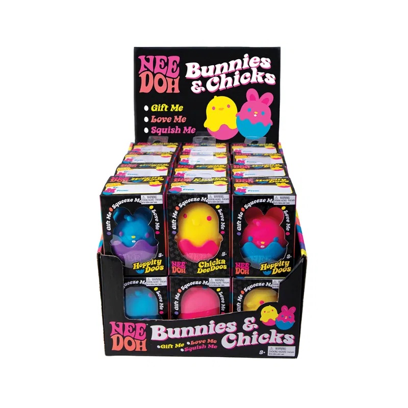 El precio es por 1 unidad. Disponemos de 6 variantes: pollito azul, pollito amarillo, pollito rosa, conejito azul, conejito rosa y conejito amarillo. Si está interesado en un motivo concreto, añada la variante elegida a la nota del pedido. Si está en stock, estaremos encantados de complacerle. Si no se especifica un motivo concreto, enviaremos uno al azar. ¡Juega y aprieta! El conejito Hoppity Doos y el pollito Chicka DeeDoos tienen una cara adorable, colores brillantes, una superficie suave y una base extraíble. Ayuda eficazmente a reducir el estrés y la ansiedad, y a mejorar la concentración y la productividad de los niños. Al involucrar los sentidos y ocupar las manos, se calmarán y se concentrarán mejor en la tarea. El animal está relleno de una masa flexible segura y no tóxica similar a la masa. Un pequeño regalo perfecto para cualquier ocasión. El material exterior de los productos NeeDoh es goma termoplástica, el relleno interior es alcohol polivinílico, ambos materiales no son tóxicos. El relleno interior de PVA también se utiliza como recubrimiento en productos farmacéuticos y suplementos alimenticios. Principales características: a elegir entre 6 motivosayuda a reducir el estrés y la ansiedadfabricado con material no tóxicoIdeal como regalo