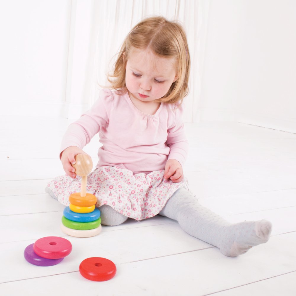 Aprenda todo sobre el tamaño, desde el más grande hasta el más pequeño, con este colorido muñeco de madera. El paquete incluye todo lo que se muestra en la imagen. La varilla está unida a la base solo con una cuerda para mayor seguridad de los niños en caso de que se caigan sobre el juguete. Ayuda a desarrollar la destreza y la coordinación. Fabricado con materiales de alta calidad y obtenidos de forma responsable. Cumple con las normas de seguridad europeas actuales. Se compone de 9 piezas. Principales características: 9 colores del arcoírisDesarrolla la habilidad y la coordinación