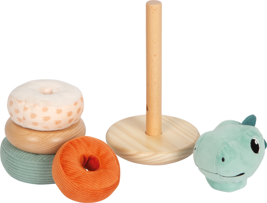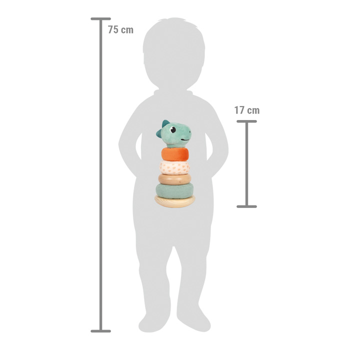 ¡Con la torre apilable con diseño de dinosaurio colorido, el entrenamiento de las habilidades motoras será una experiencia divertida y lúdica! El juguete motorizado atraerá a los pequeños fanáticos de los dinosaurios con una combinación de felpa y madera. Entrena la coordinación ojo-mano y la motricidad fina, pero también revitaliza el interior de la habitación infantil. La divertida torre oscilante con cuatro anillos de colores, una barra central móvil segura y una cabeza de dinosaurio sonriente ayuda a los niños a reconocer tamaños y colores. La base de la torre es redondeada, 3 anillos están hechos de telas de diferentes diseños, colores y texturas y 1 anillo es de madera. El tema de la línea de productos "Dino" son las fascinantes criaturas prehistóricas que captan la atención de personas de todas las edades. Estos juguetes fomentan el desarrollo de habilidades motoras, inspiran la creatividad e imaginación de los niños y los animan a aprender más sobre la naturaleza y la historia de estos gigantes prehistóricos. Principales características: 3 anillos de tela suaves, 1 anillo de madera, 1 cabeza de dinosauriobarra central móvilfomenta el reconocimiento de colores y tamañosentrena la motricidad y la coordinación ojo-manoparte de la línea de productos Dino