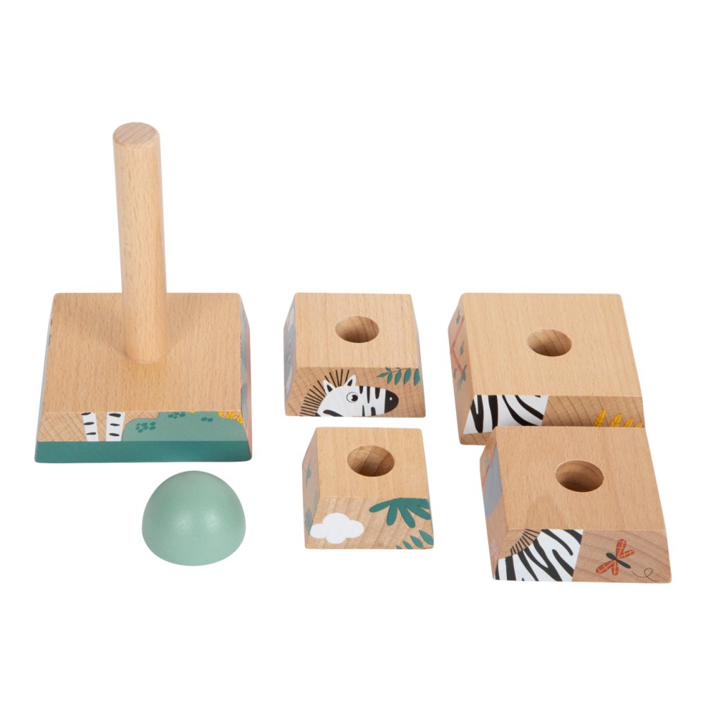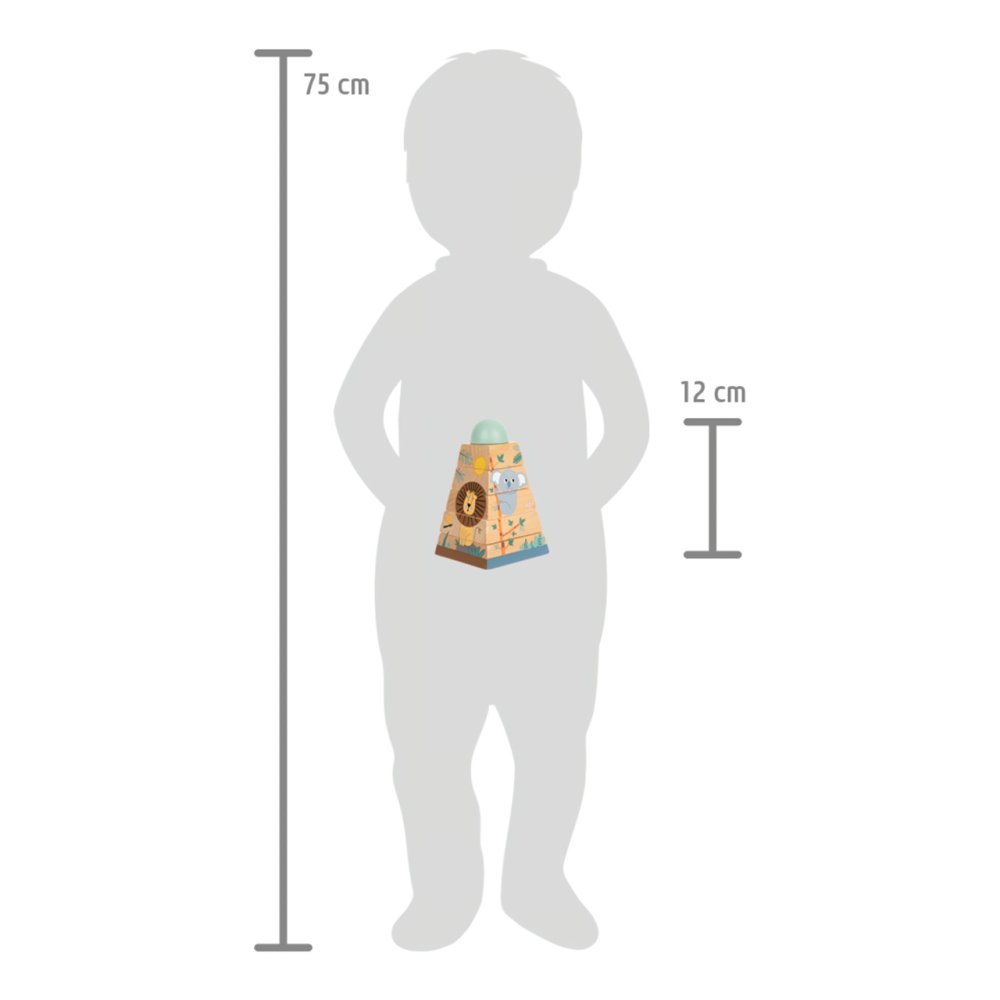 Este juguete de madera robusta está diseñado para desarrollar la motricidad fina y la percepción espacial de los niños. Al apilar bloques de madera en el orden correcto, se crea una torre que muestra animales salvajes amigables como una jirafa, una cebra y un león, que ayudan a los niños a apilar. El montaje de esta torre de encaje de seis piezas entrena la coordinación mano-ojo y la estimación del tamaño. Es una actividad motora educativa y un juego de habilidad para los niños más pequeños. Gracias a su original colorido, complementa y hace que la habitación de los niños sea acogedora con buen gusto. Principales características: torre de encaje de madera robusta6 piezasDiseño moderno de safari con abundante madera naturalDesarrolla la destreza y la imaginación espacialCuando se ensambla correctamente, revela una jirafa, una cebra, un koala y un leónEntrena la coordinación ojo-mano y la comprensión de diferentes tamañosJuguete motor educativo