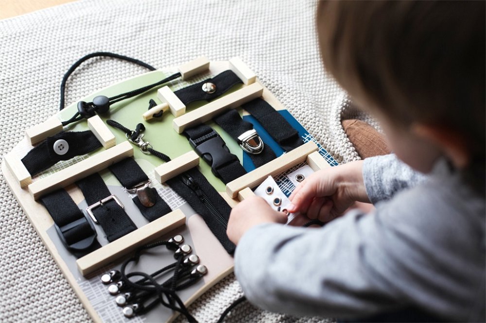 Desde interruptores con bucles y hebillas de cinturón hasta piezas con cremalleras de velcro o normales… El tablero de juego en colores modernos de moda presenta una amplia gama de posibles actividades para apoyar el desarrollo de la motricidad fina. Su forma ergonómica permite jugar cómodamente delante del niño o en su regazo. Gracias a su práctica asa, el tablero se puede colgar. Ofrece muchos elementos de conexión y actividades que los niños conocen de la vida cotidiana. Al abrir, cerrar o enhebrar, nuestros pequeños exploradores practican sus habilidades de agarre y la coordinación ojo-mano. Principales características: fomenta la destreza y las habilidades sensorialesofrece una variedad de actividades diseñadas para involucrar las habilidades motoras