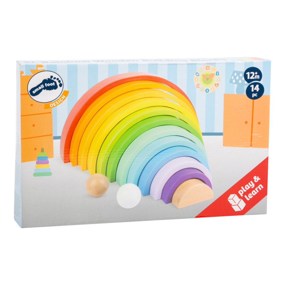 ¡Diversión colorida garantizada! El arco iris, que incluye 2 bolas de madera, está hecho de madera duradera en colores brillantes. El arco iris plegado pertenece a cada estante de la habitación, tiene muchas variaciones de plegado y juego. Del arco iris también se pueden hacer pistas para canicas, una torre alta o un columpio para animales de peluche. Es versátil y apoya la creatividad de los niños. ¿Qué color es el más bonito? Principales características: Desarrolla las habilidades motoras del niñoSe utiliza en MontessoriProcesamiento de madera de calidad