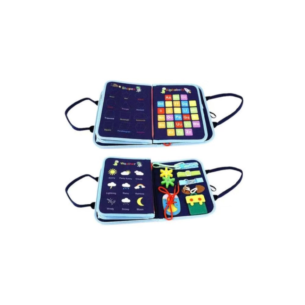 ¡El libro sensorial de tela busy es diversión y desarrollo en uno! Descubre la magia del libro sensorial busy, que desarrolla de forma divertida la motricidad fina, el pensamiento lógico, la concentración y la percepción sensorial de tu hijo. El libro contiene diversas actividades motrices como botones, hebillas, cremalleras, velcros, cordones y demás. Es adecuado para estímulos táctiles, visuales y sonoros. El libro es suave y ligero. Perfecto como regalo de cumpleaños, Navidad o simplemente para alegrar y desarrollar. Principales características: fomenta la independencia y la curiosidad naturalfomenta el desarrollo de la motricidad, la paciencia y la imaginacióncontiene diversas actividades