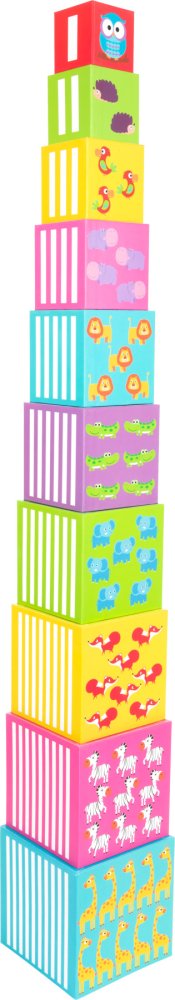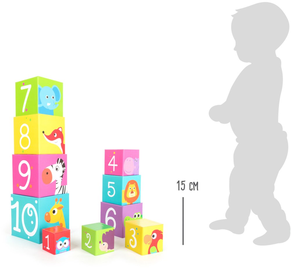 ¿Qué tan alto puedes apilar? Estos alegres animales invitan a todos los pequeños constructores a apilar. Diez cubos ligeros y estables hechos de cartón. Tienen una colorida impresión con animales y números. Los niños practican sus habilidades motoras y concentración con ellos. Puedes guardar los cubos dentro de ellos mismos, no ocupan mucho espacio. Los niños practican el reconocimiento de animales y números. Principales características: cubos huecos, puedes guardarlos dentro de ellos mismospractican las habilidades motoras y la concentraciónayudan a reconocer números, colores y animalesfabricado con madera 100% FSC® La marca y el certificado FSC® (Forest Stewardship Council) garantizan que la madera con la que se fabricó el producto no se extrajo ilegalmente y proviene de bosques gestionados de forma sostenible o respetuosa con la naturaleza, en los que se cumplen estrictos requisitos medioambientales y sociales. La marca FSC® en el producto significa que con su compra ayuda a proteger los bosques y apoya una gestión forestal sostenible, responsable o respetuosa con la naturaleza, gracias a la cual nuestros bosques son más estables, saludables, tienen una composición de especies natural y resisten mejor las consecuencias negativas del cambio climático.