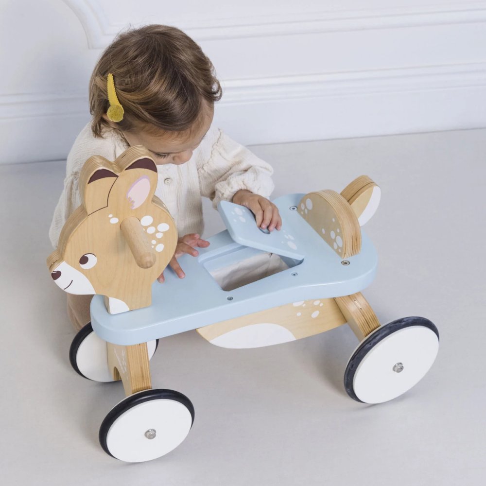 La bicicleta de equilibrio de madera con diseño de cervatillo llevará a los niños a un paseo inolvidable lleno de diversión. Diseño atractivo y construcción robusta, que también incluye un compartimento de almacenamiento oculto en el asiento. Los niños pueden esconder sus tesoros o su merienda en él. Pintado con colores pastel, fabricado con madera de caucho sostenible. Gracias a la bicicleta de equilibrio, los niños tendrán movimiento diario y serán más fuertes, practicarán la coordinación y el equilibrio. Juguetes con propósitoTodos los juguetes de Le Toy Van están hechos con un objetivo: durar mucho tiempo. Diseñados con amor por artesanos experimentados utilizando prácticas éticas y materiales sostenibles que son más amables con nuestro planeta. Principales características: fabricado éticamente con madera sostenibleprobado según los estándares más estrictospintado con pinturas no tóxicas a base de aguainspira el juego imaginativodesarrolla habilidades cognitivas Colección Petilou: La colección para bebés y niños pequeños de Le Toy Van incluye principalmente juguetes táctiles que también sirven como herramientas de aprendizaje para los más pequeños. La colección está inspirada en la naturaleza que nos rodea y está diseñada para desarrollar los sentidos de los niños a través de diferentes sonidos, texturas, formas y pesos. Así, los niños involucran todos sus sentidos desde una edad temprana. En la colección encontrará, por ejemplo, rompecabezas, insertadores, andadores, …