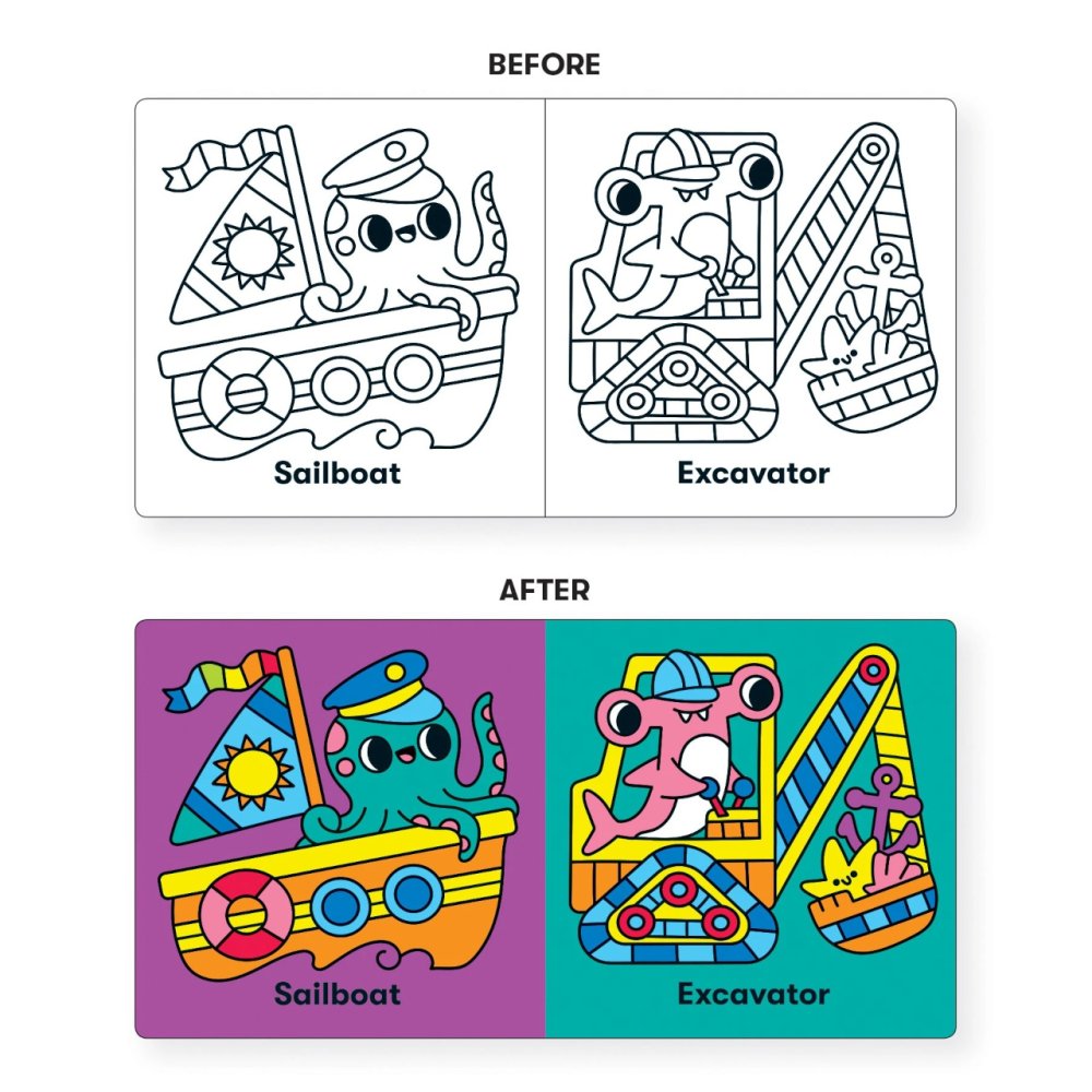Descubre la magia de los juguetes de baño únicos. Un libro de imágenes aparentemente discreto cobra vida con alegres colores al mojarse. Atrae fácilmente la atención de los niños y los entretiene durante el baño, a la vez que ayuda a desarrollar sus habilidades cognitivas. Las proporciones del juguete están especialmente adaptadas a las manos pequeñas y torpes de los niños. Principales características:6 páginas con imágenesactivación de colores al sumergirse en aguaDiseño gráfico de Lizzy Doyle