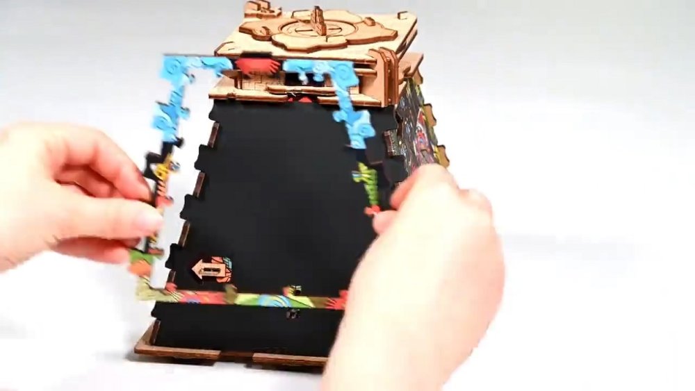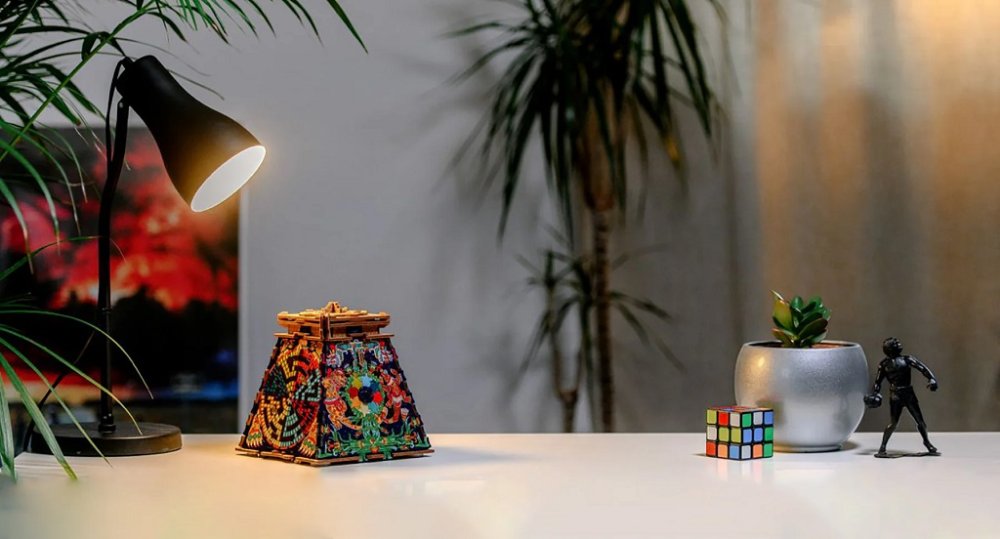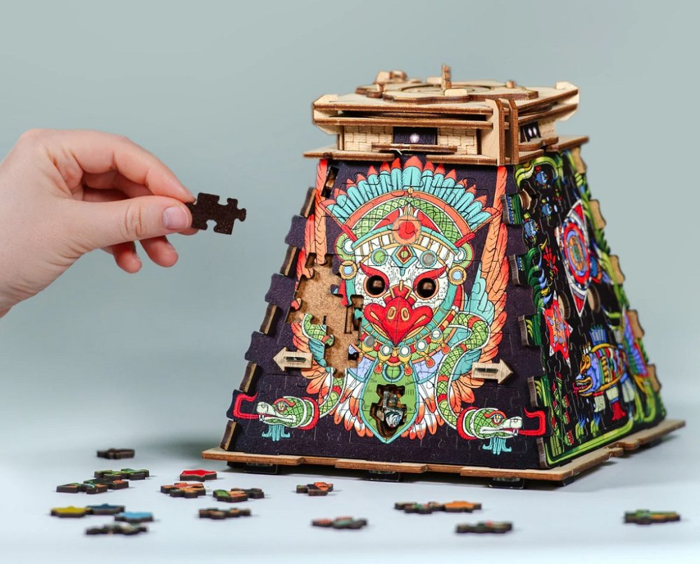 ¿Te gustan los puzles, los rompecabezas, los acertijos y los enigmas? ¿Y quieres regalar algo a un ser querido? En ese caso, seguro que te gusta el rompecabezas con forma de pirámide azteca. El rompecabezas combina el puzle tradicional con los retos de un juego de escape. Coloca correctamente más de 200 piezas del puzle, descubre pistas ocultas y resuelve tareas lógicas para abrir los cierres mecánicos de esta mística caja. El rompecabezas en sí mismo es un regalo extraordinario y, además, puedes colocar un mensaje personal, una joya u otra pequeña cosa en el espacio interior. ¡Pero no será fácil para el destinatario! Para acceder al regalo y abrir la caja, debe colocar correctamente todas las piezas del puzle y resolver los enigmas. El rompecabezas está hecho a mano de madera y, gracias a la alta calidad y precisión de la elaboración y las ilustraciones de Steve Simpson y Joaquín Nava, es adecuado como regalo o decoración. Si le gustan los retos y los cambios, puede comprar otro juego de puzzles para las paredes laterales de la pirámide y obtener un nuevo aspecto para su inusual decoración (ID5021 o ID5020). Principales características: Adecuado como regalo o decoracióntiempo de juego de 90 a 120 minutospara 1 o 2 jugadorescon espacio interior para insertar un pequeño regalohecho a mano de madera ilustraciones de Steve Simpson y Joaquín Nava