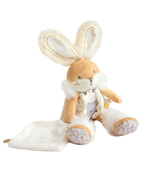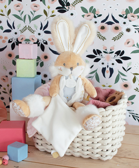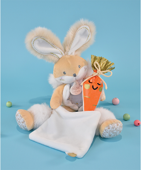 El conejito de peluche con mantita acompaña al bebé desde su nacimiento para brindarle suavidad, comodidad y abrazos. Desarrolla los sentidos y la curiosidad. Este adorable conejito, con sus suaves toques, velará con ternura por todos los pequeños… Es un regalo muy bonito para Navidad o para celebrar el nacimiento de un bebé. Presentado en una hermosa caja de regalo con gráficos que evocan modernidad y lujo. Mantenimiento: Lavar en baño a 30°. Secado natural o a baja temperatura. Principales características: felpa suave, material de primera calidaden conformidad con las normas europeas CEhermosa caja de regaloadecuado desde el nacimiento