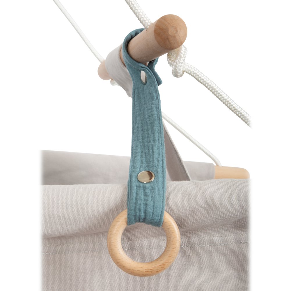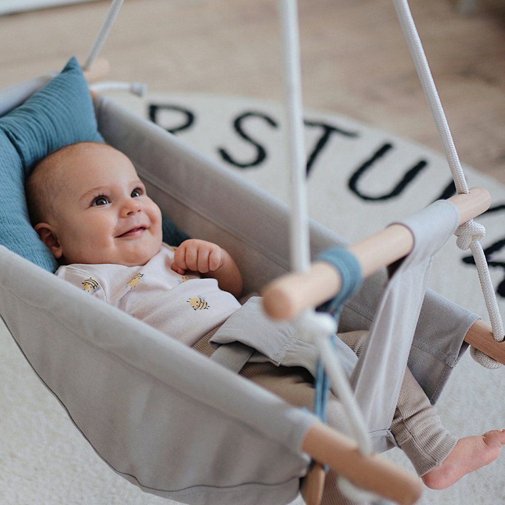El diseño textil del columpio ofrece una comodidad excepcional gracias a su diseño bien pensado, su suave cojín extraíble y su cinturón de 3 puntos. El cojín se fija al columpio con presillas. El tejido de fácil cuidado de la superficie de descanso se adapta de forma óptima a la forma del cuerpo del niño. En color azul humo, complementa lúdicamente el interior o refresca la terraza de verano. La construcción robusta de madera maciza cuidadosamente elaborada, los cinturones de seguridad y el cinturón con asas ayudan a garantizar una alta seguridad al balancear a los más pequeños. La alta proporción de madera maciza, los materiales naturales y el color de moda hacen de este columpio infantil un punto de atracción absoluto. Lo ideal para bebés felices. Principales características: columpio infantil cómodoel tejido se adapta al cuerpo del niñomadera lisa de calidadla almohada suave y extraíble se puede asegurar con presillasen el paquete: cinturón de 3 puntos, aro sensorial extraíblemadera visible y otros materiales naturalestambién se pueden colocar otros accesorios, por ejemplo, un chupetecapacidad de carga de 30 kg