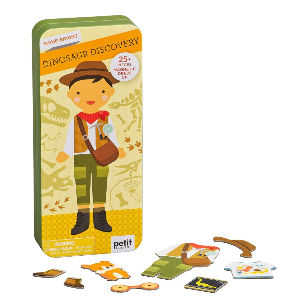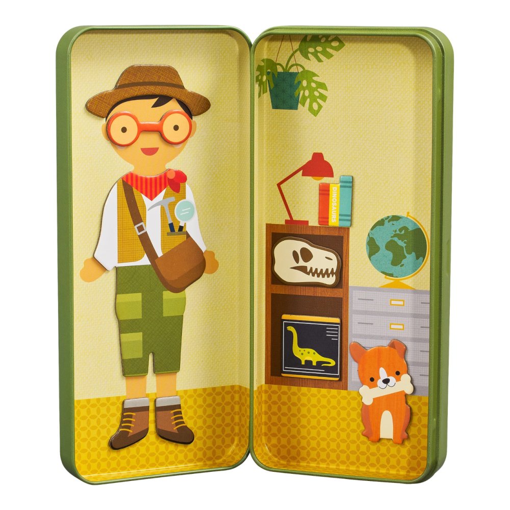 Puzzle magnético Arqueólogo, descubridor, investigador. Siempre curioso. Utiliza las piezas magnéticas, equipa a tu paleontólogo y crea una escena temática con dinosaurios. Principales características: Inspira a los jóvenes aventureros/as a perseguir su pasión Contiene una imagen de un joven arqueólogo con accesorios magnéticosContiene una escena de dinosaurios