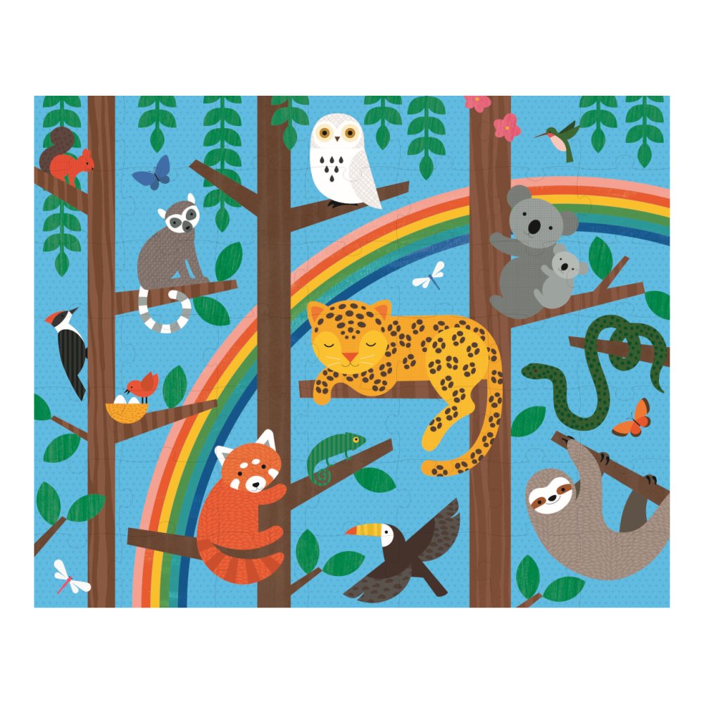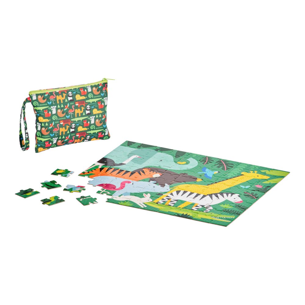 Reúne este zoológico y descubre cuántos animales de la jungla puedes encontrar. Este hermoso rompecabezas de 49 piezas es de doble cara y tiene 2 diseños únicos con simpáticos animales. ¡Doble diversión! Es adecuado para jugar en casa y de viaje. Las imágenes son solo ilustrativas, el número de piezas representadas puede variar. Principales características: puzzle de doble cara de 49 piezas con 2 diseñosbolsa de almacenamiento con cremallera hecha de poliéster 100% recicladoimpreso en papel FSCembalado sin usar plásticoperfecto para viajar   La marca y el certificado FSC® (Forest Stewardship Council) garantizan que la madera con la que se fabricó el producto no se extrajo ilegalmente y procede de bosques gestionados de forma sostenible o respetuosa con la naturaleza, en los que se cumplen estrictos requisitos medioambientales y sociales. La marca FSC® en el producto significa que, con su compra, está ayudando a proteger los bosques y a apoyar una gestión forestal sostenible, responsable o respetuosa con la naturaleza, gracias a la cual nuestros bosques son más estables, saludables, tienen una composición de especies naturales y resisten mejor los efectos negativos del cambio climático.