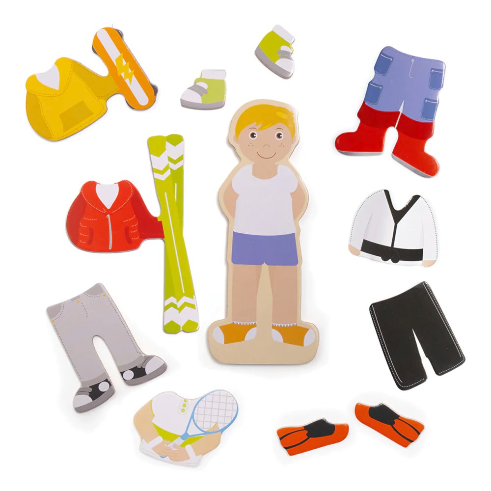 Fomente la creatividad y la narración de cuentos con la nueva gama Mag-Play de Bigjigs Toys. Viste al personaje con diferentes atuendos usando piezas magnéticas. Hay 7 atuendos diferentes para elegir, que puedes combinar correctamente o combinar y crear tu propio atuendo. Se suministra en una caja sólida con tapa magnética para facilitar su almacenamiento. Principales características: 7 atuendos diferentesdesarrolla la creatividadalmacenamiento prácticoFabricado con materiales de alta calidad y obtenidos de forma responsable.Cumple con las normas de seguridad europeas vigentes.
