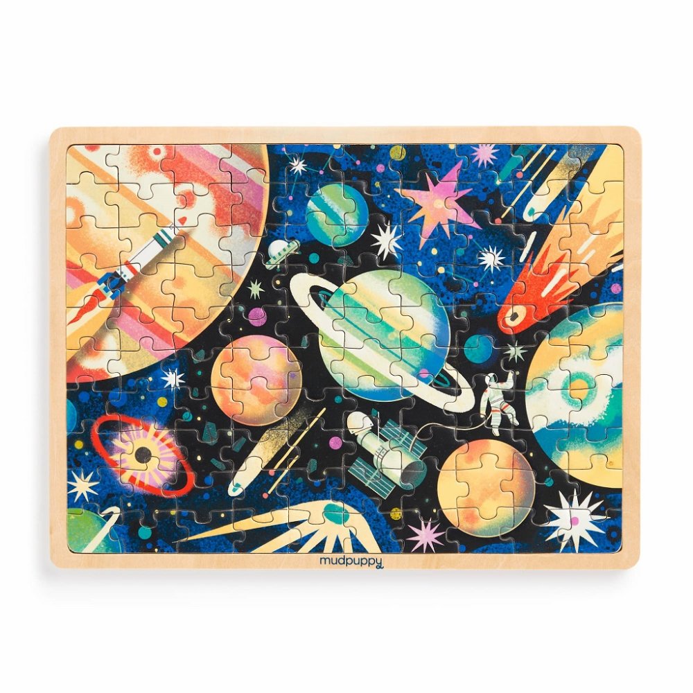El puzzle introduce a los niños en el espacio, mostrando planetas, asteroides y cometas hermosos e ilustrados con audacia. Incluye un soporte que convierte tu puzzle terminado en una decoración única para el hogar. Principales características: Puzzle de 100 piezaspráctico soporte de madera