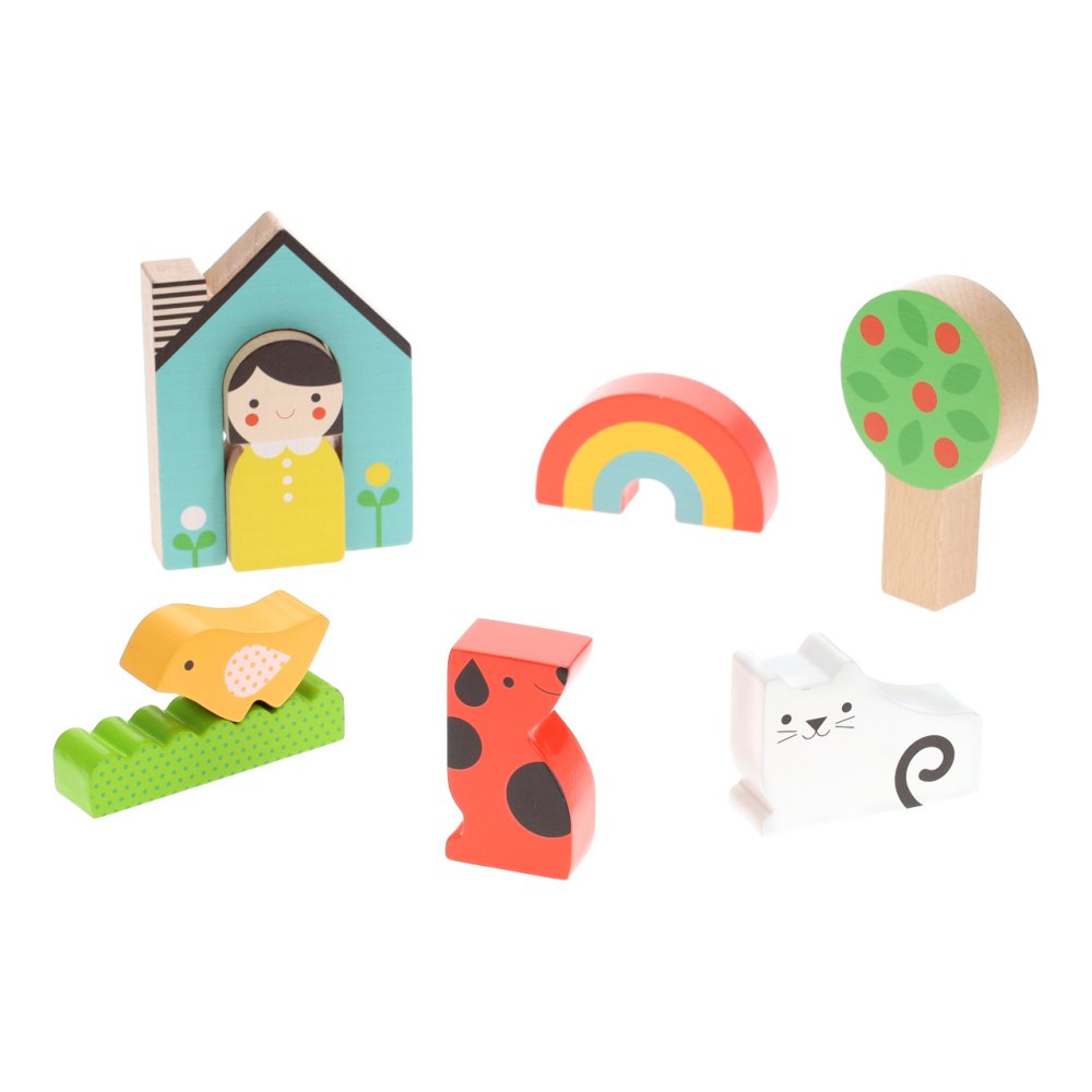 Deje que los niños desarrollen historias con el colorido rompecabezas de la casa y las figuras. Pueden crear escenas hogareñas o montar las piezas como un rompecabezas. Las piezas están hechas de madera contrachapada duradera y adaptadas a las manos de los niños. Principales características:8 piezasutilizable para juegos y rompecabezasFabricado con madera 100% FSC® La marca y el certificado FSC® (Forest Stewardship Council) garantizan que la madera con la que se fabricó el producto no se extrajo ilegalmente y procede de bosques gestionados de forma sostenible o respetuosa con la naturaleza, en los que se cumplen estrictos requisitos medioambientales y sociales. La marca FSC® en el producto significa que, con su compra, está ayudando a proteger los bosques y a apoyar una gestión forestal sostenible, responsable o respetuosa con la naturaleza, gracias a la cual nuestros bosques son más estables, saludables, tienen una composición de especies naturales y resisten mejor los efectos negativos del cambio climático.