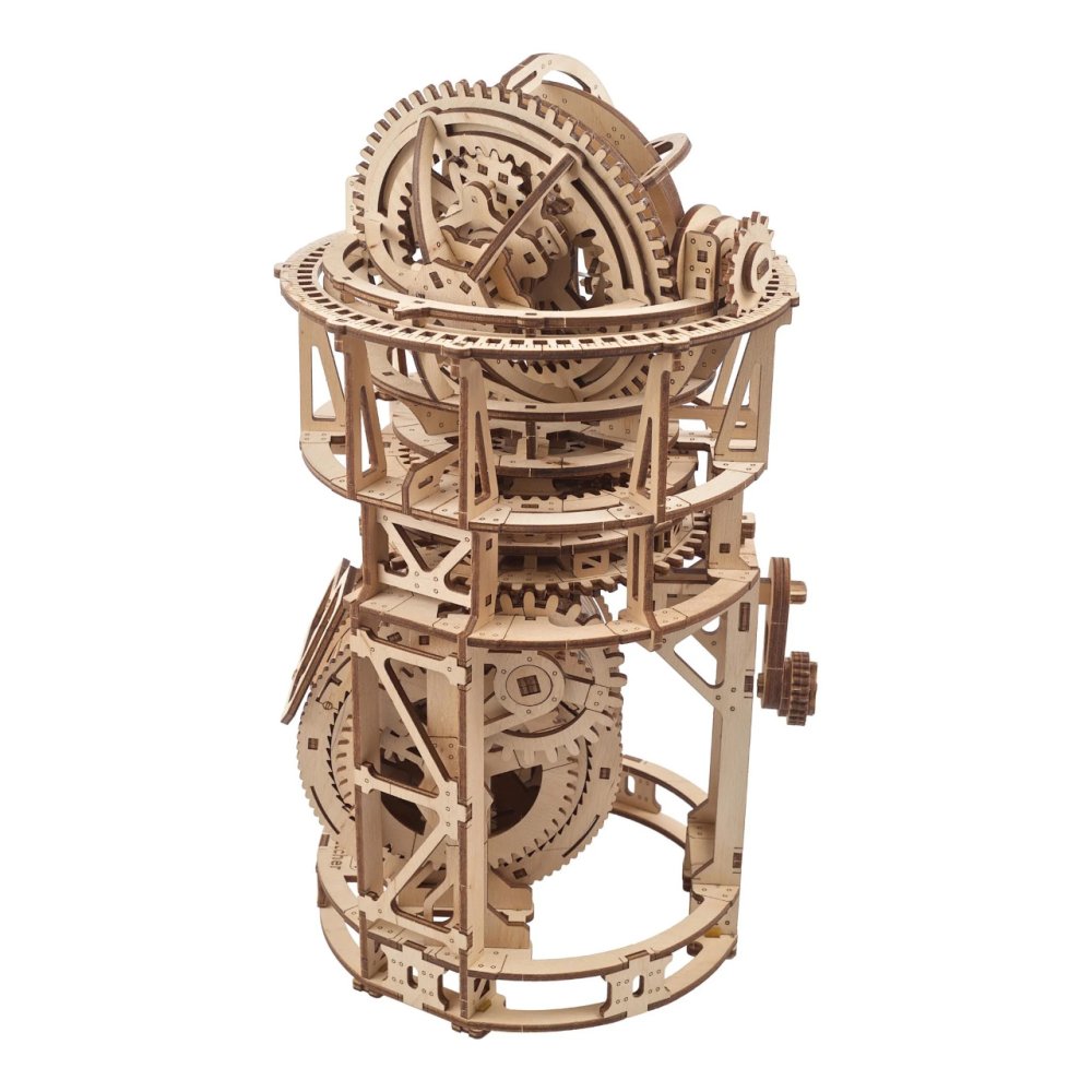 ¿Alguna vez te ha caído una manzana en la cabeza? Kit de construcción de un mecanismo de reloj hecho de madera contrachapada. Intenta afrontar un desafío exigente y lidiar con los efectos de la gravedad en el mecanismo del reloj construyendo un ingenioso tourbillon, que fue desarrollado por primera vez a finales del siglo XVIII por Abraham‑Louis Breguet. El corazón imaginario del modelo está hábilmente representado aquí como una cúpula de observatorio móvil, que estimulará tu imaginación para reflexionar sobre la mecánica celeste, o tal vez buscar nuevos planetas, o incluso vida inteligente. El mecanismo se pone en movimiento tensando un resorte metálico duradero que puede mantenerlo en funcionamiento y demostrar su función hasta por tres horas. Ofrece tiempo suficiente para que puedas estudiar en detalle el hipnótico funcionamiento del mecanismo con una construcción abierta, o relajarte mientras hace tictac de fondo. El tiempo se muestra ingeniosamente en el modelo mediante un par de discos grandes que, por supuesto, puedes ajustar con precisión girándolos. El disco de los minutos gira suavemente al mismo tiempo que el tourbillon y el disco de las horas avanza a saltos gracias a un mecanismo de percusión. Este extraordinario observatorio no ocupa mucho espacio, por lo que también es un regalo adecuado para cualquiera que busque un atractivo adorno para su escritorio. Equipado con instrucciones detalladas de montaje. Principales características:338 piezas cortadas con precisiónalta dificultad de montajehasta 3 horas de funcionamiento con una sola cargaposibilidad de ajustar la hora exactadiseñado y fabricado en Ucrania