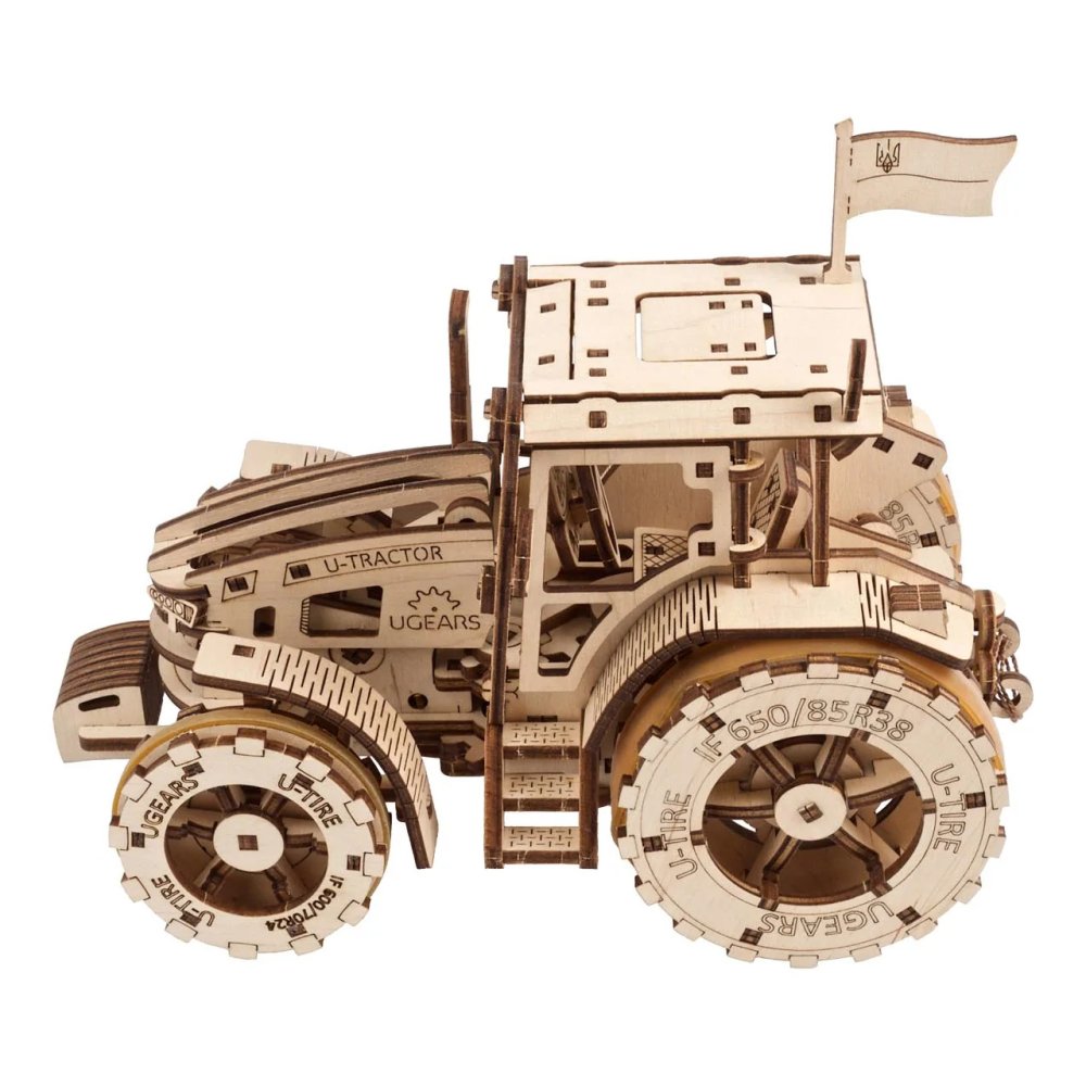 ¡Retiren todos los tanques de invasión! Kit de tractor hecho de madera contrachapada. ¡Ármate de determinación, pon a prueba tus habilidades y muestra tu apoyo al pueblo ucraniano! Intenta relajarte creativamente en tiempos difíciles construyendo un símbolo de resistencia a la agresión rusa. Serás recompensado con un juguete elaborado de formas atractivas y una construcción ingeniosa, que será un recordatorio de la fuerza y la importancia del coraje individual. Un resorte de metal fuerte proporciona una transmisión confiable del modelo. Después de enrollarlo, el tractor se puede arrancar y detener con una palanca en la cabina, que es fácilmente accesible a través de las puertas que se abren. La dirección del movimiento se puede ajustar girando las ruedas delanteras, mientras que el embrague de rueda libre permite que la máquina gire más bruscamente. Todas las ruedas están equipadas con bandas de goma, gracias a las cuales el modelo mantiene la dirección y la velocidad independientemente de la superficie de conducción. Revelarás un detalle único después de inclinar el capó, porque mientras está en marcha, también puedes observar el bloque del motor que se mueve fascinantemente. Por supuesto, el tractor está decorado con una bandera con el escudo nacional ucraniano grabado en detalle. Junto con las piezas de madera, también encontrarás piezas de cartón en el paquete para construir un modelo de tanque simple, ¡para que puedas probar de inmediato el papel de los agricultores ucranianos! Ambos modelos, por su diseño, invitan a adaptarlos a tus ideas. Recomendamos utilizar acuarelas para pintar. Equipado con instrucciones detalladas de montaje. Principales características:272 piezas cortadas con precisióndificultad de montaje mediapuertas y capó que se pueden abrirel modelo resultante es dirigible y capaz de circular de forma autónomaIncluye un modelo de tanque de cartón para arrastrardiseñado y fabricado en Ucrania