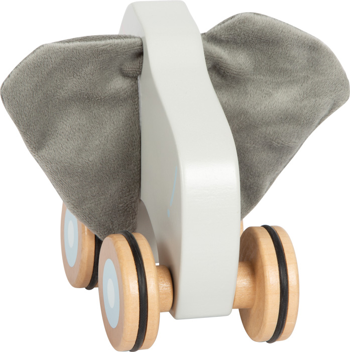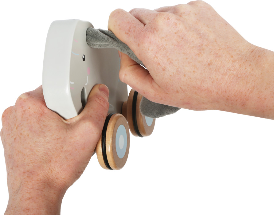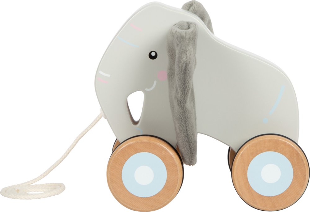 ¡Y allá vamos! El adorable elefante de cuerda con orejas grandes y suaves, fabricado con madera maciza de alta calidad, sin duda se convertirá en un compañero inolvidable para cada niño en sus primeros pasos independientes. Se puede tirar fácilmente con una cuerda y anima a los niños pequeños a gatear y caminar. Así disfrutarán de mucha diversión en los paseos. Las ruedas de goma ayudan a una conducción suave y silenciosa. El juguete fomenta el desarrollo de las habilidades motoras, la movilidad y la percepción sensorial. Las orejitas crujientes se pueden quitar y lavar fácilmente. Principales características: Diseño robustoorejas suaves extraíblescon una cuerda de 60 cm de largofomenta el equilibrio y la coordinación de movimientosdesarrolla las habilidades motorascon ruedas silenciosas de gomainspira la creatividad y la imaginación de los niños