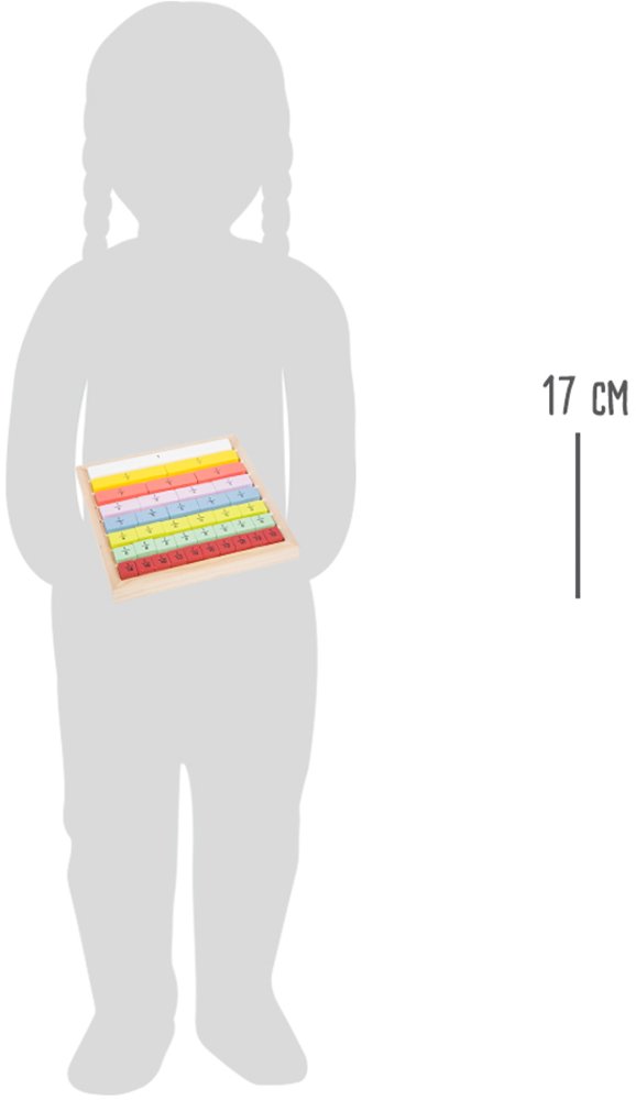 ¡Diversión colorida! Este juego, fabricado con madera 100% certificada FSC®, ayuda a los niños a practicar las fracciones. Motiva a los niños a explorar el mundo de los números. ¼ = ? Principales características: palitos de diferentes longitudes y colores, con impresión de númerosMadera 100% FSC®entrena la destreza, los números La marca y el certificado FSC® (Forest Stewardship Council) garantizan que la madera con la que se fabricó el producto no se extrajo ilegalmente y proviene de bosques gestionados de forma sostenible o respetuosa con la naturaleza, en los que se cumplen estrictos requisitos medioambientales y sociales. La marca FSC® en el producto significa que con su compra ayuda a proteger los bosques y apoya una gestión forestal sostenible, responsable o respetuosa con la naturaleza, gracias a la cual nuestros bosques son más estables, saludables, tienen una composición de especies natural y resisten mejor las consecuencias negativas del cambio climático.