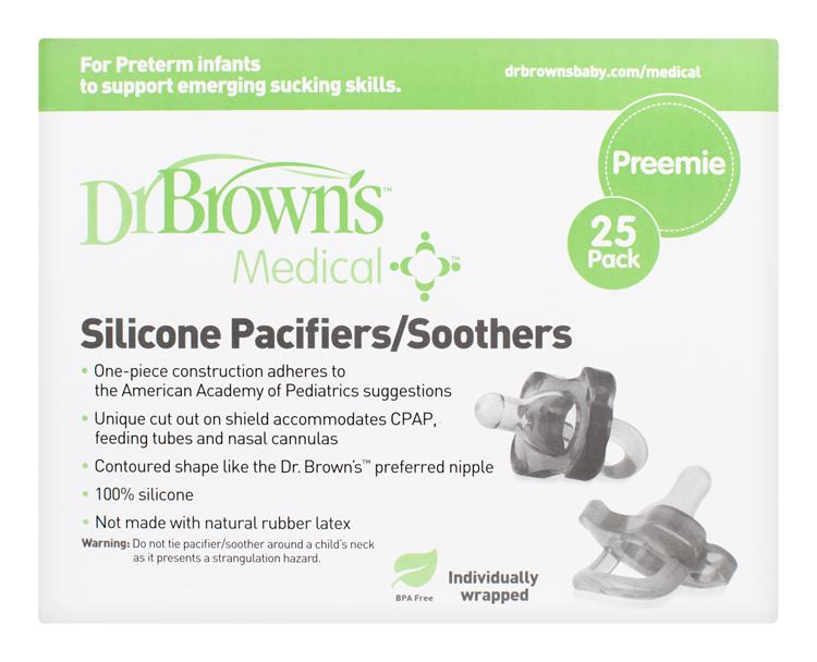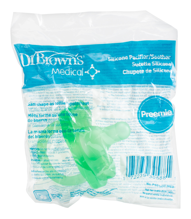 Tetina de silicona de una sola pieza para bebés prematuros en tamaño Preemie.Chupete para ayudar a activar el reflejo de succión. Forma óptima y recortada del escudo del chupete bajo la nariz del bebé. El escudo del chupete con un corte único se adapta al uso de una máscara CPAP o a la alimentación por sonda. Tiene la misma forma que los Dr.Chupetes de repuesto Brown's para biberones estrechos, Narrow. 100% silicona. No está fabricado con látex de caucho natural. Sin BPA. Fácil de limpiar. Apto para el lavavajillas, para la esterilización en el microondas y para la esterilización al vapor.UsarInstrucciones de limpieza para hospitales: El chupete es apto para un uso múltiple. Lave bien el chupete con agua caliente y un detergente. Enjuáguelo bien y asegúrese de que todos los orificios y pliegues del chupete estén libres y limpios. Los chupetes son aptos para el lavavajillas y para su uso en un esterilizador eléctrico y de microondas o para su uso en bolsas de esterilización al vapor para microondas. En caso de esterilización central con vapor, esterilice a 120 °C durante 20 minutos.Instrucciones de limpieza para el hogar: Manipule siempre los chupetes con las manos limpias y sobre una superficie limpia. Se recomienda esterilizar por inmersión en agua hirviendo durante 3 minutos antes del primer uso. Una cocción prolongada puede deteriorar su calidad. Deje que se enfríe y exprima el agua que haya quedado atrapada en el chupete. Lave normalmente con agua caliente y un detergente, enjuáguelo bien y déjelo secar bien. Cuando utilice el lavavajillas, coloque el chupete en la parte superior.AvisoAdvertencia para preservar la seguridad y la salud de su hijo: Revise bien el chupete antes y después de cada uso, especialmente si al niño le están saliendo los dientes. Compruebe la resistencia del chupete tirando de su extremo en todas direcciones. Cambie el chupete inmediatamente si muestra algún signo de desgaste, por ejemplo, grietas o cambios de forma. Las piezas pequeñas pueden inhalarse y causar lesiones graves. Por razones de seguridad e higiene, se recomienda cambiar el chupete después de 1 o 2 meses, aunque no esté visiblemente dañado. No ate cintas al chupete ni se lo ponga al niño alrededor del cuello, ¡supone un riesgo de estrangulamiento! Si el niño se mete todo el chupete en la boca, mantenga la calma y sáquelo con cuidado; está diseñado para que no pueda tragárselo. No sumerja el chupete en bebidas dulces ni medicamentos, ya que puede provocar caries en el bebé. No deje el chupete en líquido esterilizador durante más tiempo del recomendado por el fabricante para evitar dañar el material. Almacenar en un lugar oscuro y seco. No deje al niño con el chupete sin supervisión.Proveedor:INTERPHARM Eslovaquia, como Uzbecká 18/A 821 06 Bratislava Tel. +421 2 402 00 400 firma@interpharm.sk www.interpharm.sk