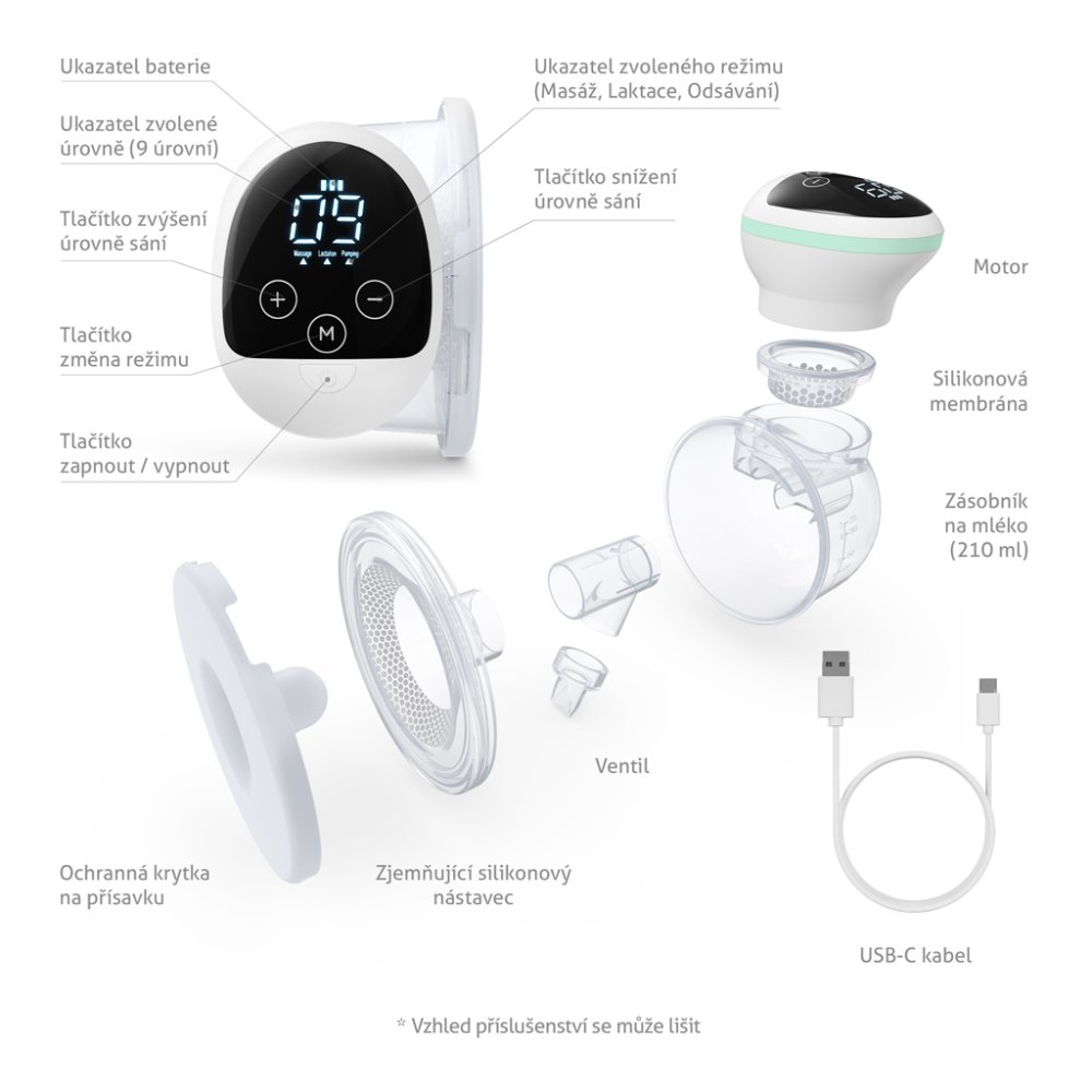 Alivia a las madres en casa y de viajeLa bomba extractora de leche eléctrica TrueLife Nutrio BP W5 aumenta la comodidad tanto para las madres como para los bebés.Estimula, extrae, alivia- Sus 3 modos garantizan la estimulación de la glándula mamaria para favorecer la lactancia y el flujo de leche, el masaje para relajar los senos y la extracción de leche materna a un ritmo que imita la succión del bebé.- Cada uno de los modos ofrece 9 niveles de intensidad.- Si tiene problemas con la producción de leche, el extractor puede ayudar con la lactancia.Comodidad para el usuario- La extracción se realiza automáticamente gracias a la bomba eléctrica. El dispositivo es una pieza completa con batería para poder llevarlo cómodamente consigo de viaje.- También puede comprar un sujetador especial en el que simplemente inserte el extractor y tenga las manos libres.Uso cómodo y seguro- El diseño ergonómico del extractor, fabricado con silicona suave y plástico sin BPA, se adapta perfectamente al pecho, la leche fluye a un recipiente con un volumen de 210 ml y, por lo tanto, se puede almacenar para más adelante.- La pantalla LED clara muestra el modo seleccionado actualmente y el temporizador, y también puede configurar todo fácilmente con los botones.silicona suave- Colocar el extractor de leche en el pecho es agradable gracias al suave accesorio de silicona que se adapta perfectamente al pecho y es suave para la piel.100% seguro sin BPA- El extractor de leche está fabricado con silicona de alta calidad y plástico seguro sin compuesto de BPA.Duración de hasta 180 minutos- No es necesario conectarlo a la red eléctrica, el extractor de leche tiene una batería incorporada que dura de 2 a 3 horas de funcionamiento.Recipiente para leche- El extractor de leche incluye un recipiente para leche incorporado con un volumen de 210 ml.Pantalla LED con temporizador- La clara pantalla LED con botones táctiles muestra toda la información necesaria. También puedes encender un temporizador que controle que la extracción dure un máximo de 30 minutos.Sujetador especial- Se puede comprar un sujetador especial TrueLife Nutrio Bra para el extractor, en el que puedes insertar cómodamente el extractor. Así tendrás las manos libres y podrás dedicarte a otras actividades.Carga- Carga mediante cable USB, que está incluido en el paquete