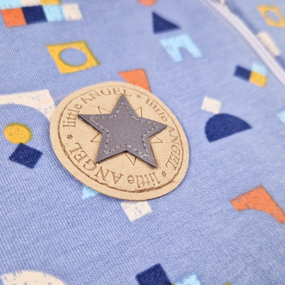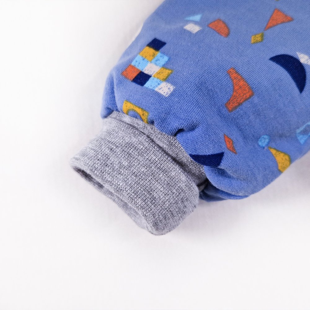 El buzo está diseñado para usar en casa, en el cochecito o en la silla de coche. Se adapta perfectamente a todo tipo de cuerpo, no se estira y se adapta a varias tallas. El buzo tiene capucha y se cierra con cremallera. Tiene un protector de cremallera cosido en el cuello para evitar arañazos. Se complementa con un logotipo reflectante en forma de estrella sobre un logotipo de cuero. En las mangas y los bajos del pantalón hay un amplio puño cosido con el que se puede regular la longitud.