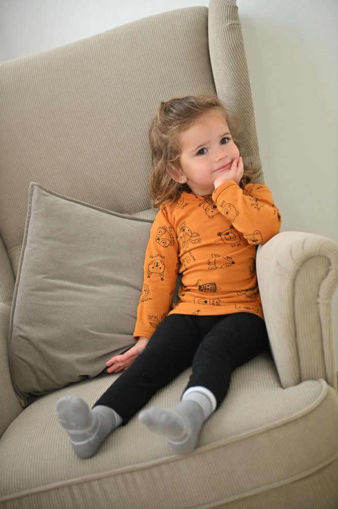 La camiseta de algodón de calidad con material Outlast® añadido quedará bien tanto a niñas como a niños. La camiseta tiene mangas largas y está hecha de Outlast® de bucle, por lo que es perfecta para climas más fríos. El material termorregulador Outlast® se encargará del bienestar térmico del niño durante todo el tiempo que lo lleve puesto. Este material puede prevenir la sudoración y eliminar el exceso de calor, que acumula y utiliza cuando baja la temperatura ambiente. La camiseta es adecuada tanto para el uso diario como para actividades deportivas.